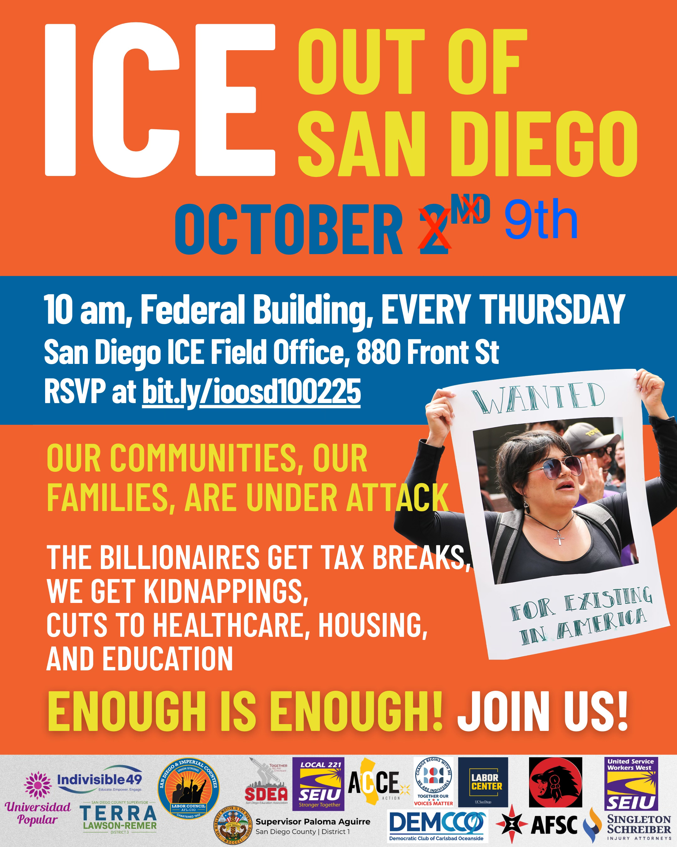 From Take Action San Diego — On October 18, millions of us will be rallying, across the U.S., and all across the world, for human rights, for democracy and to say “Power To The People!”. Join us for inspiration, togetherness and to demonstrate our commitment, our strength and our persistence. We are not going away! Sign up here!
