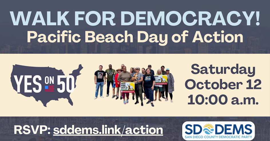Republicans in Texas and other states are making a power grab to keep Trump in unchecked control for two more years. Californians must mobilize to pass Proposition 50, which would level the field by approving temporary new districts in our state. Passing this ballot measure in the November 4 special election is urgent for our democracy -- and we need all hands on deck! Learn more and sign up to help at sddems.link/prop50.