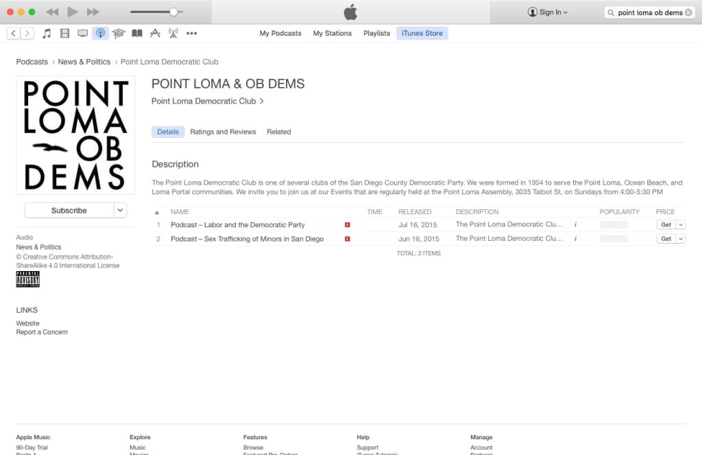 We encourage you to subscribe to our Podcast channel here. You can also find us on the iTunes Store just search for Point Loma & OB Dems or click here, as well as on Stitcher.
